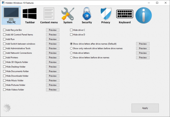 Hidden Windows 10 Features 1.3.1 Portable