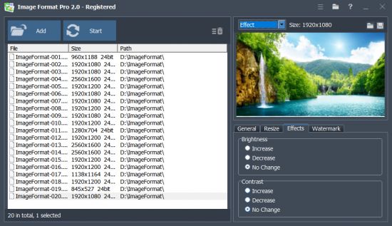 The application supports adding text or image watermarks, providing users with ways to protect their work or brand their images creatively. A preview feature enables users to see the effects of their modifications before finalizing the conversion, ensuring satisfaction with the results.