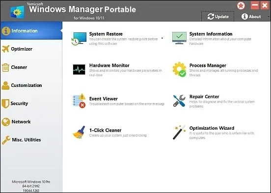 Yamicsoft Windows Manager 2.3.3 Portable is a comprehensive Windows optimization and management tool designed to enhance system performance, security, and customization. The portable version allows users to run the software without installation, providing easy access to a wide range of features for cleaning, optimizing, and configuring Windows settings efficiently.